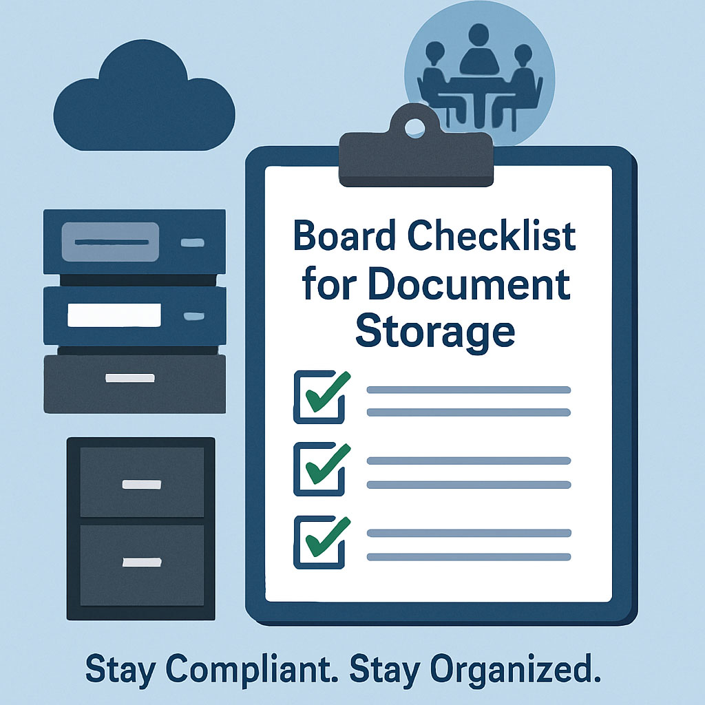Every Board should review a checklist for the storage of all corporate documents and their safe keeping. Apart from the legal requirement to store some documents, it is important you can recover vital documents in the event of a disaster such as fire, flooding or a cyber- attack.
