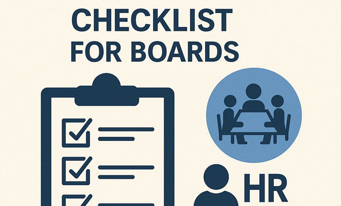 Every Board should oversee compliance with all HR and IR matters and ask the CEO to provide compliance with all such legislation. This checklist will help you to ask about these matters.